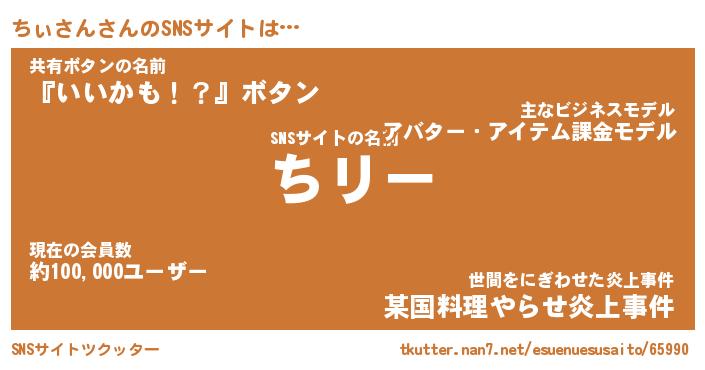 | ファンタジー風あだ名 | 『チィフェル』『エターナルチィサンー』 |