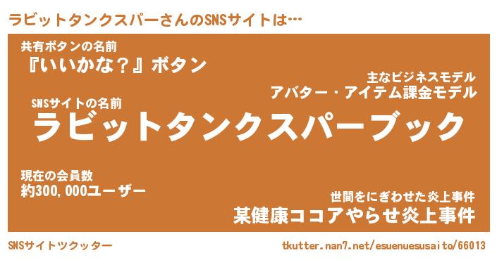 | ツイッター | ラビットタンクスパーさんのツイッターID『namakemono_nyan』 |