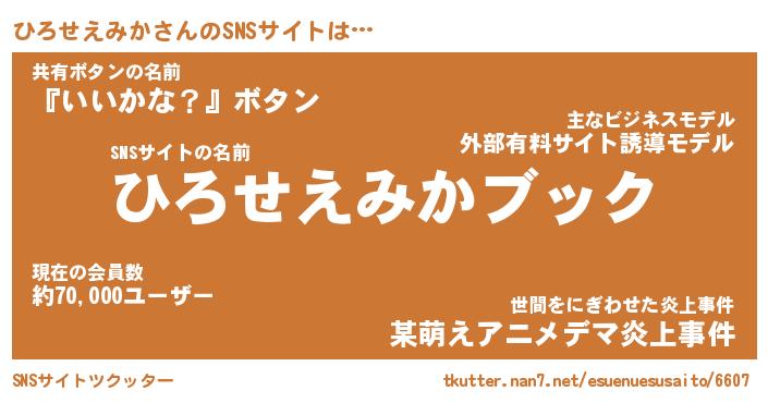 | 男性向けラノベタイトル風あだ名 | 『ヒロセエミカアートオンライン』 |