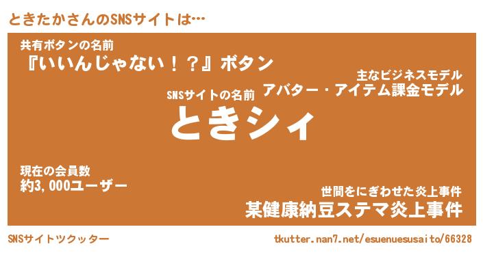 | ヘコむあだ名 | 『ときにゅー』『豆乳』『ときお』 |