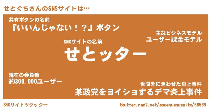 | 男性向けラノベタイトル風あだ名 | 『セトグチアートオンライン』 |