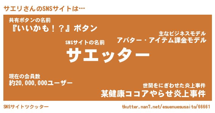 | ヘコむあだ名 | 『サエにー』『なまこ酢』 |