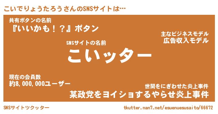 | 胡散臭い通販商品みたいなあだ名 | 『億万長者になれるブレスレット…その名も「こいでりょうたろう」』 |