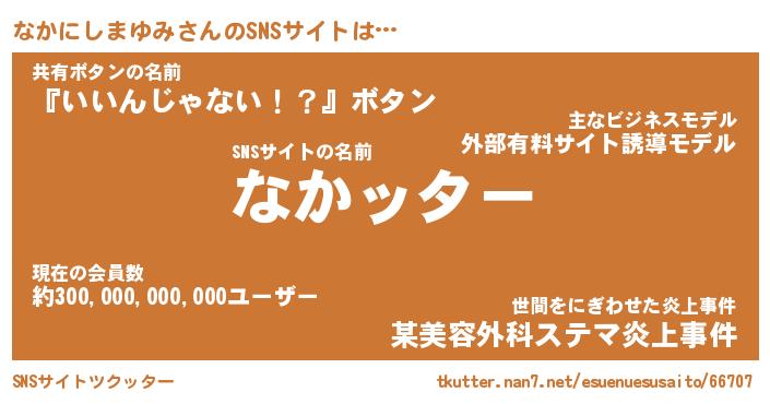 | 胡散臭い通販商品みたいなあだ名 | 『億万長者になれるブレスレット…その名も「なかにしまゆみ」』 |