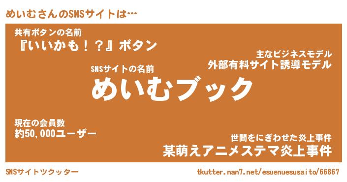 | 欧米人風あだ名 | 『マイケルめいむ』『めいむクリステル』 |