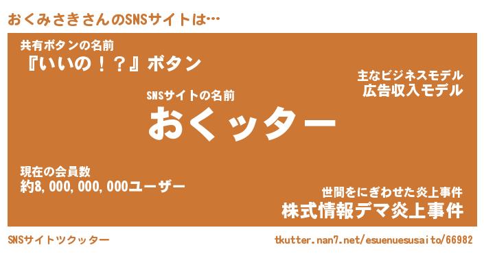 | 胡散臭い通販商品みたいなあだ名 | 『億万長者になれるブレスレット…その名も「おくみさき」』 |