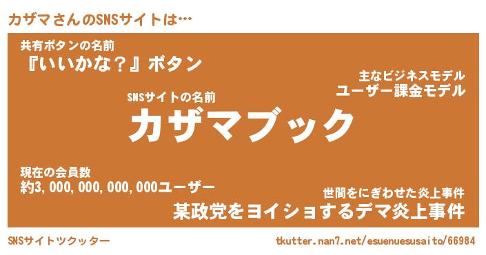 | 肩書あだ名 | 『カザマ店長』『カザマ国家主席』 |