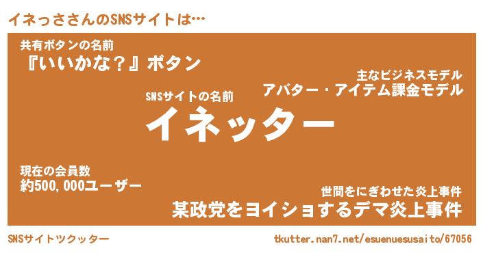 | ファンタジー風あだ名 | 『イネフェル』『エターナルイネッサー』 |