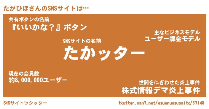| 男性向けラノベタイトル風あだ名 | 『タカヒホアートオンライン』 |