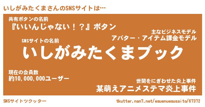 | 胡散臭い通販商品みたいなあだ名 | 『億万長者になれる霊験あらたかなお札…その名も「いしがみたくま」』 |