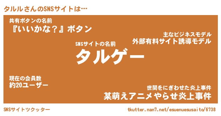 | 男性向けラノベタイトル風あだ名 | 『タルルの憂鬱』 |