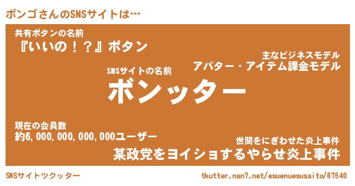 | 胡散臭い通販商品みたいなあだ名 | 『億万長者になれるブレスレット…その名も「ボンゴ」』 |