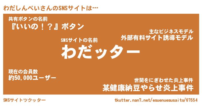 | 胡散臭い通販商品みたいなあだ名 | 『億万長者になれる霊験あらたかなお札…その名も「わだしんぺい」』 |