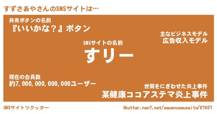 | ファンタジー風あだ名 | 『スズフェル』『エターナルスズサアヤー』 |