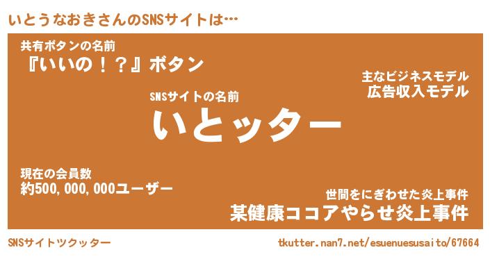 | 男性向けラノベタイトル風あだ名 | 『イトウナオキアートオンライン』 |