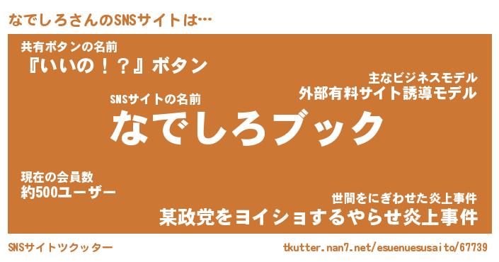 | 意味不明あだ名 | 『ペロリンなでしろ』『永久保存なでしろ』 |