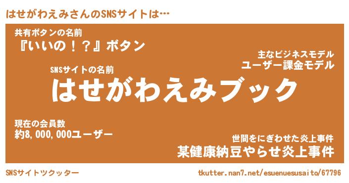 | ポケモン風あだ名 | 『ハセチュウ』『ハセガダネ』 |