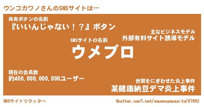 | 男性向けラノベタイトル風あだ名 | 『ウンコカワノアートオンライン』 |
