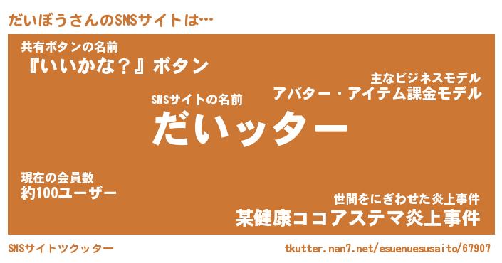 | 胡散臭い通販商品みたいなあだ名 | 『億万長者になれるブレスレット…その名も「だいぼう」』 |