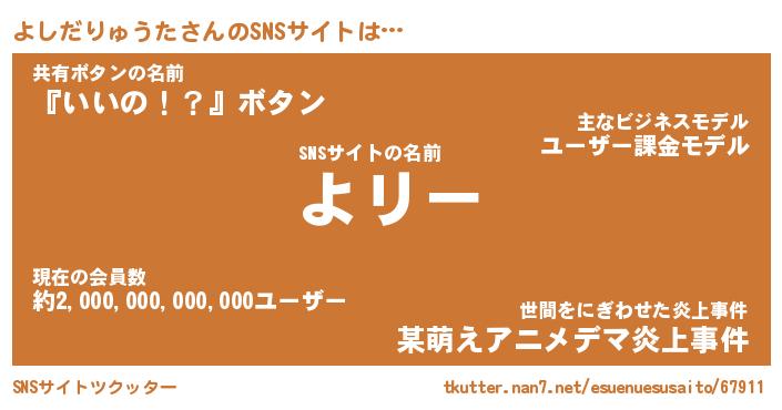 | ポケモン風あだ名 | 『ヨシチュウ』『ヨシダダネ』 |