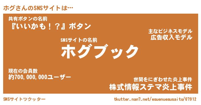 | ヘコむあだ名 | 『ホグふぇ~』『酢こんぶ』『ホグお』 |