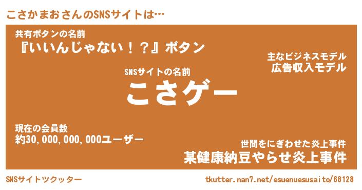 | 肩書あだ名 | 『こさかまお店長』『こさかまお総理大臣』 |