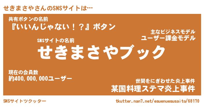 | 肩書あだ名 | 『せきまさや御曹司』『せきまさや大統領』 |