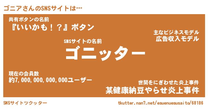 | ファンタジー風あだ名 | 『ゴニフェル』『エターナルゴニアー』 |