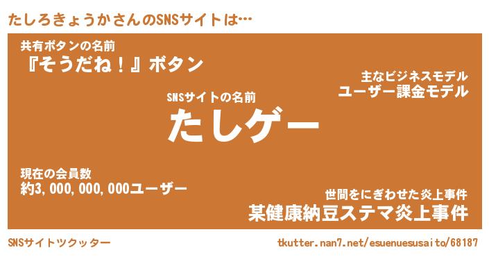 | 胡散臭い通販商品みたいなあだ名 | 『必ず成功する水晶球…その名も「たしろきょうか」』 |