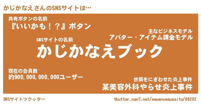 | 肩書あだ名 | 『かじかなえ社長』『かじかなえ国家主席』 |