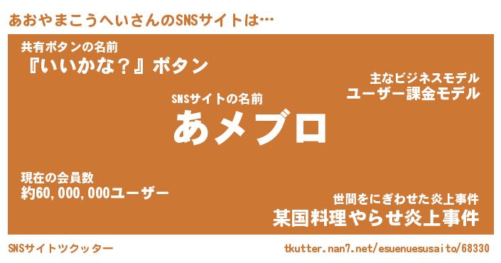 | ツイッター | あおやまこうへいさんのツイッターID『katatsumuri_idle』 |