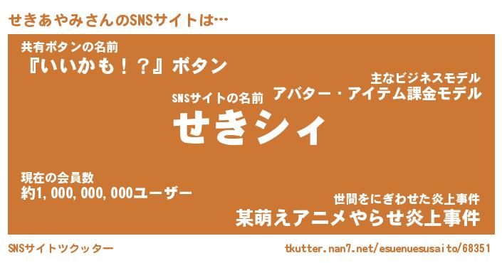| 肩書あだ名 | 『せきあやみ社長』『せきあやみ大統領』 |