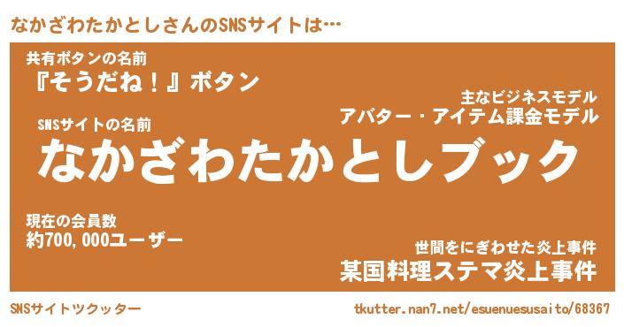 | 女子向けラノベタイトル風あだ名 | 『誰かこのなかざわたかとしを説明してください! ~契約から始まるウェディング~』 |