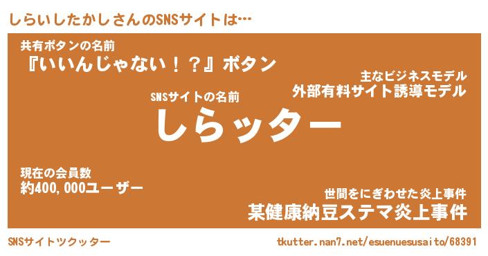 | 肩書あだ名 | 『しらいしたかし社長』 |