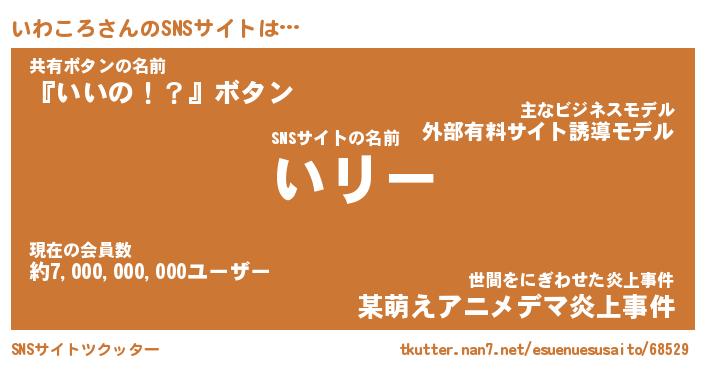 | 男性向けラノベタイトル風あだ名 | 『いわころの憂鬱』 |