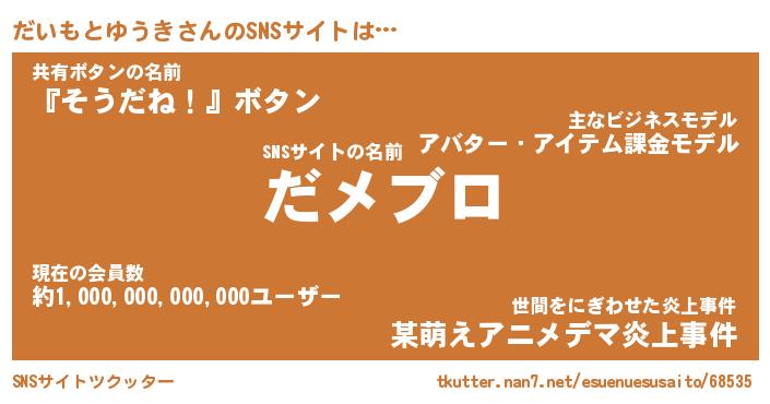 | 男性向けラノベタイトル風あだ名 | 『ダイモトユウキアートオンライン』 |