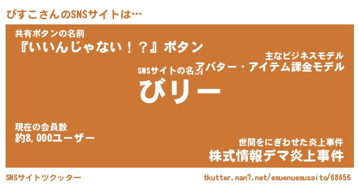 | 男性向けラノベタイトル風あだ名 | 『びすこの憂鬱』 |