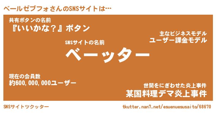 | 男性向けラノベタイトル風あだ名 | 『ベールゼブフォアートオンライン』 |