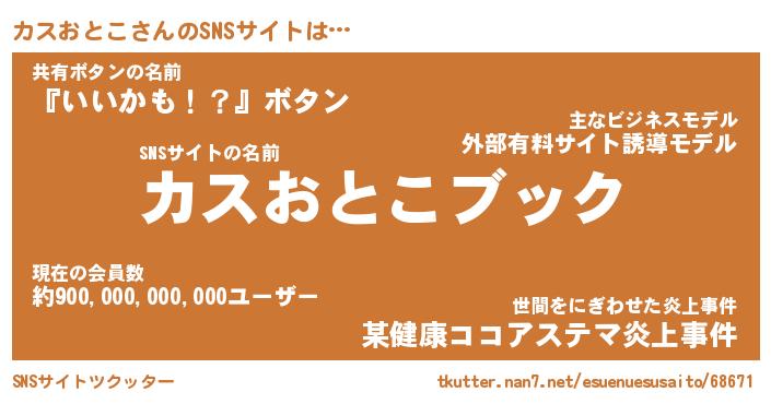 | 胡散臭い通販商品みたいなあだ名 | 『億万長者になれる霊験あらたかなお札…その名も「カスおとこ」』 |