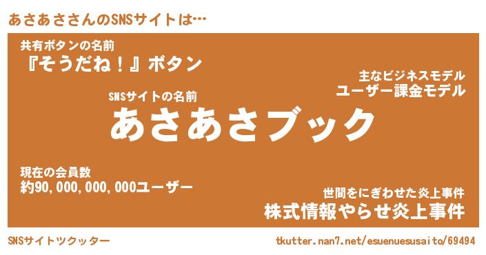 | 胡散臭い通販商品みたいなあだ名 | 『億万長者になれる霊験あらたかなお札…その名も「あさあさ」』 |