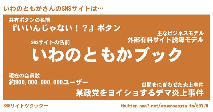 | ヒーロー風カッコイイあだ名 | 『スーパーイワノトモカ』『暗黒騎士イワ』 |