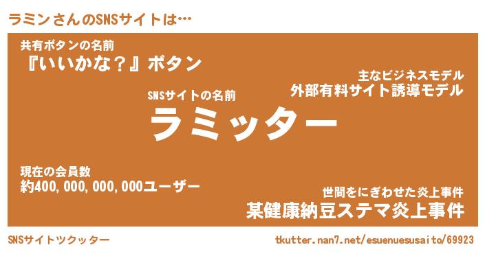 | 男性向けラノベタイトル風あだ名 | 『ラミンアートオンライン』 |