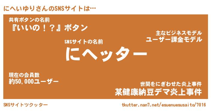 | ポケモン風あだ名 | 『ニヘチュウ』『ニヘイダネ』 |