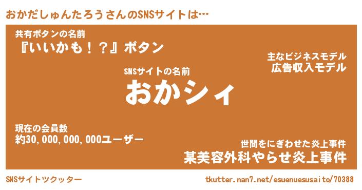 | 男性向けラノベタイトル風あだ名 | 『おかだしゅんたろうの憂鬱』 |