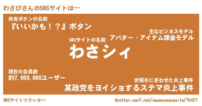 | ヘコむあだ名 | 『わさもー』『酢こんぶ』『わさ太郎』 |