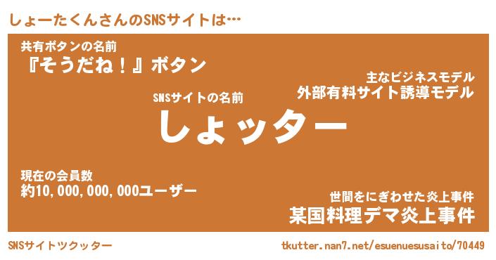| 胡散臭い通販商品みたいなあだ名 | 『億万長者になれるブレスレット…その名も「しょーたくん」』 |