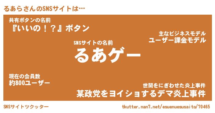 | ヘコむあだ名 | 『るあふぇ~』『レバニラ』『るあを』 |