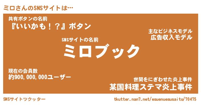 | 欧米人風あだ名 | 『マイケルミロ』『ミロクリステル』 |