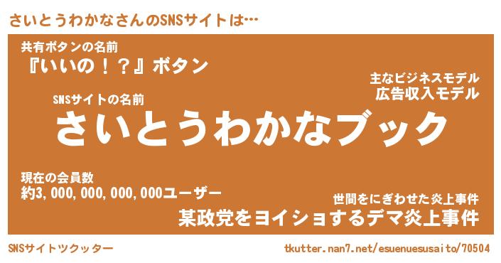 | 胡散臭い通販商品みたいなあだ名 | 『億万長者になれる霊験あらたかなお札…その名も「さいとうわかな」』 |