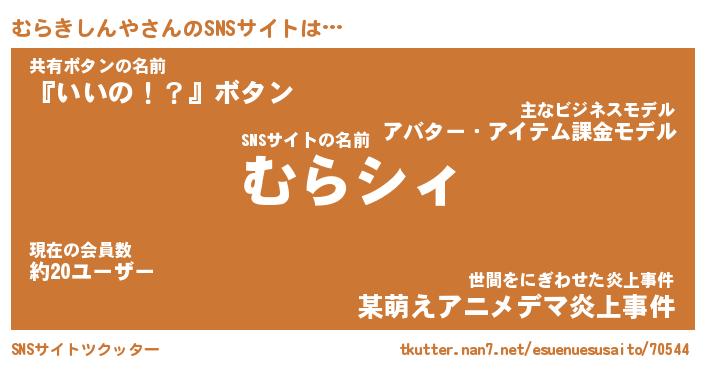 | 男性向けラノベタイトル風あだ名 | 『むらきしんやの憂鬱』 |